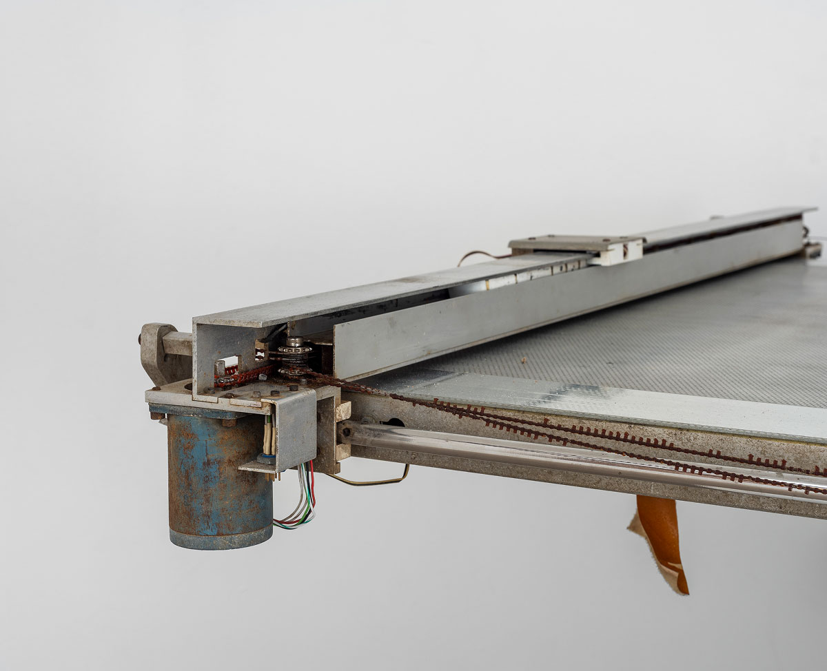 By the late 1970s and 1980s, he shifted to flatbed drawing machines which were stationary platforms where paper lay fixed and a precision pen arm glided in motion. Cohen designed the mechanical arms, servo systems, and paper feeds himself, often machining parts or repurposing industrial components to achieve the fluidity and control his work demanded.